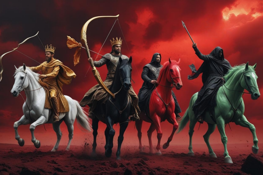Stone then walks through the first four seals, often called the Four Horsemen of the Apocalypse. The first seal introduces a rider on a white horse. This rider, however, is not Jesus, but a deceiver. “He comes with a crown and a bow, but no arrows are mentioned. It’s as though he’s coming as a person of peace… he’s a mimicker of Christ,” says Stone.