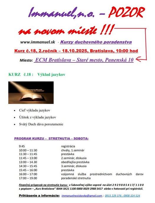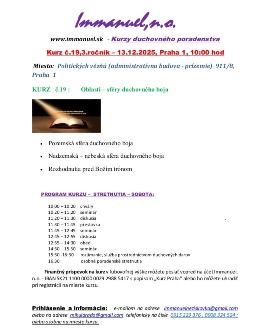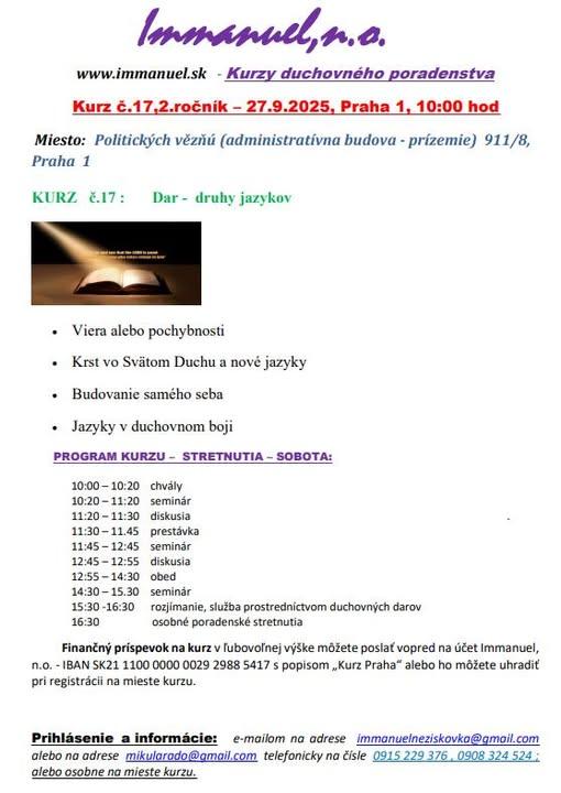 srdečne Vás pozývame na ďalší Kurz duchovného poradenstva, ktorý sa uskutoční v Prahe.